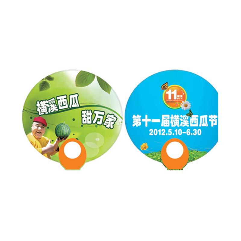 采用PP片材料印刷+扇柄制作而成,可根據(jù)客戶要求制作不同形狀及大小,價格優(yōu)惠,促銷效果顯著,不過時。不變質(zhì)。